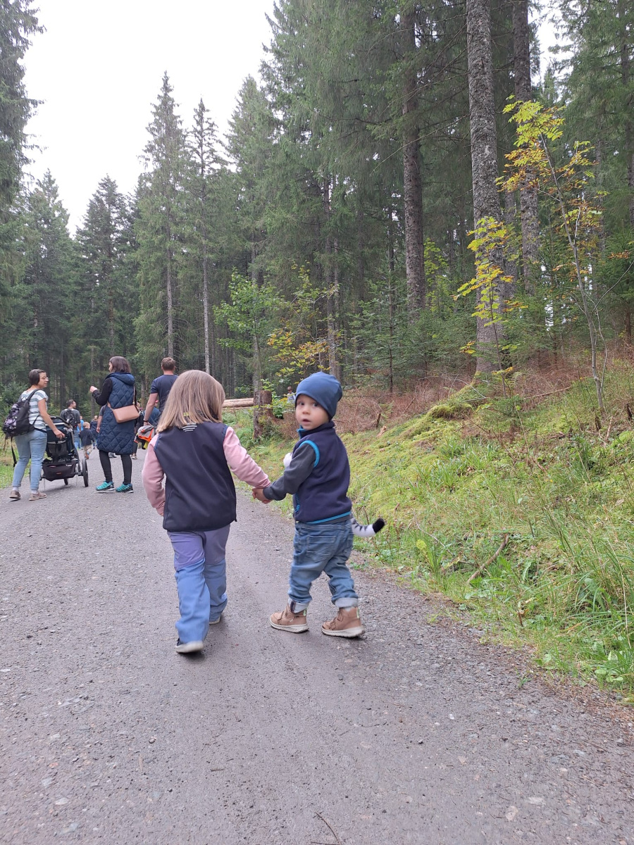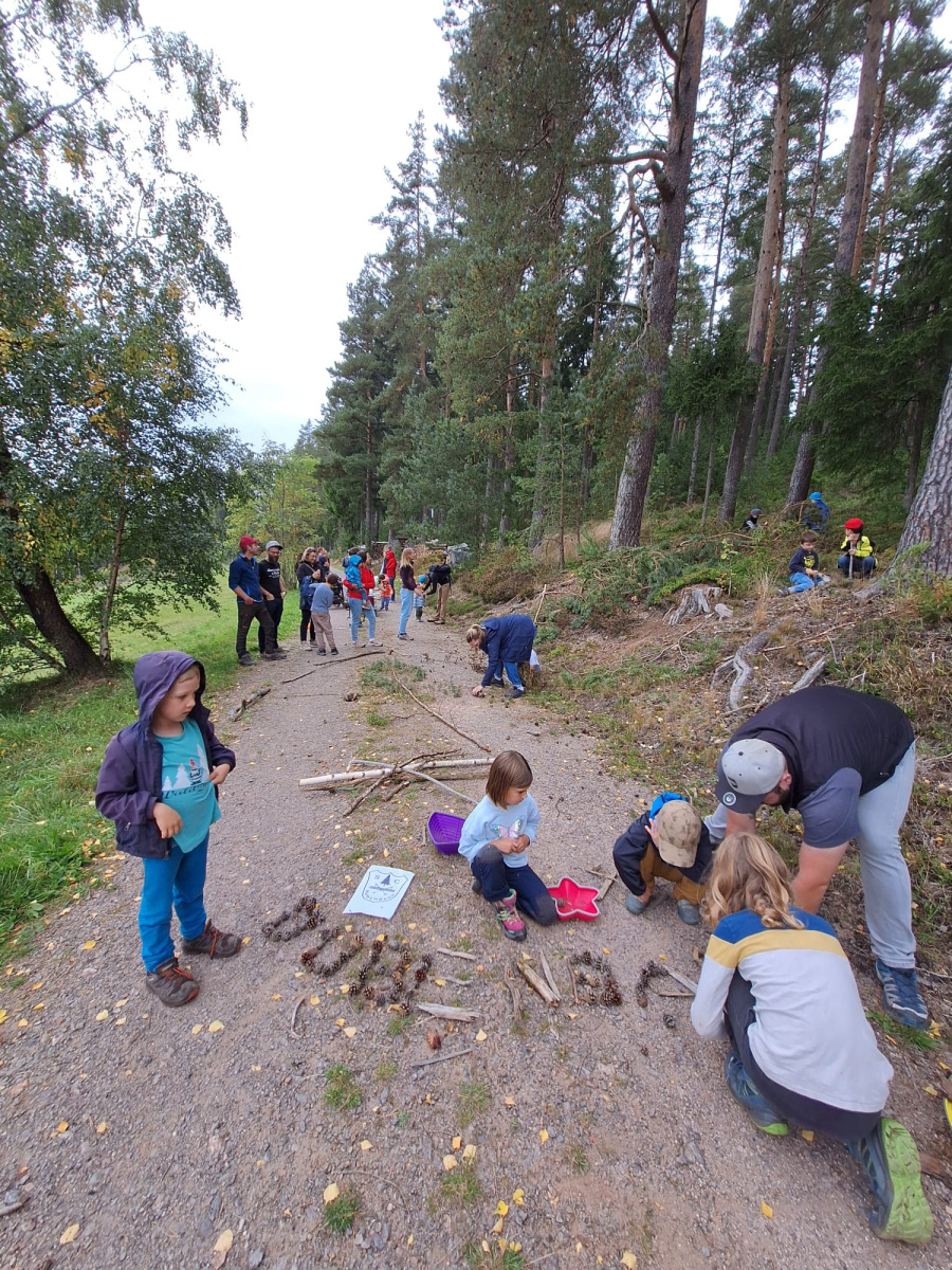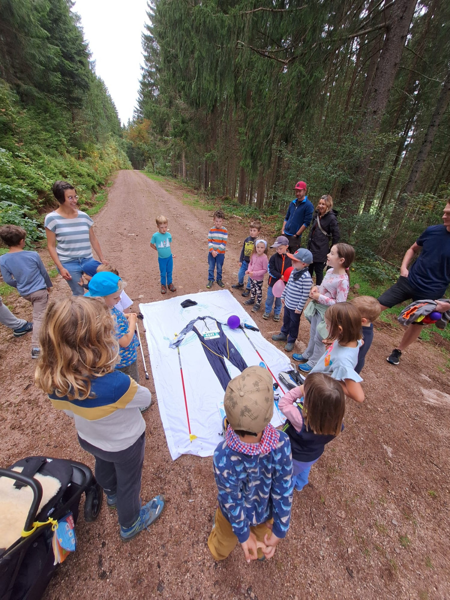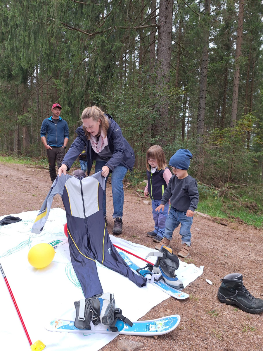 Während die Erwachsenen eine gemeinsame Wanderung durch die Umgebung unternahmen, durften sich die Kinder auf eine spannende Schnitzeljagd freuen. Dabei galt es, im Wald verschiedene Utensilien eines Langläufers zu finden – eine tolle Idee, die bei den Kindern für viel Freude sorgte! Als kleines Andenken erhielt jedes Kind am Ende ein Vogelhaus, das im Nachgang noch bemalt werden konnte.