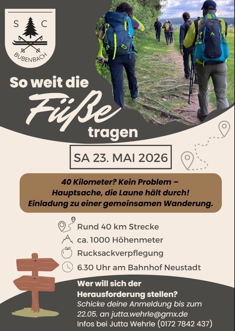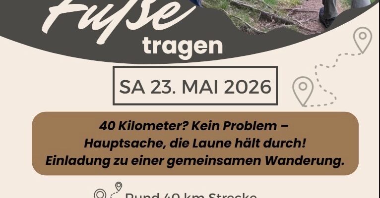 wir laden euch herzlich ein zur gemeinsamen Wanderung „So weit die Füße tragen“ am Samstag, den 23. Mai 2026.