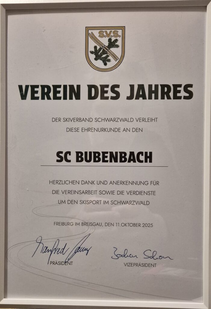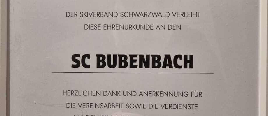 Große Freude beim SC Bubenbach: Gemeinsam mit zwei weiteren Vereinen wurde der SC Bubenbach vom Skiverband Schwarzwald zum „Verein des Jahres“ ernannt. Ausgezeichnet wurden insgesamt drei von zehn nominierten Vereinen.
